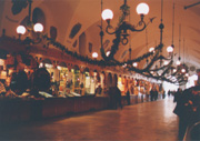 広場にある織物会館の1Fは、皮製品、こはくのアクセサリーなど、様々なお土産屋が軒をつらねています。 |
